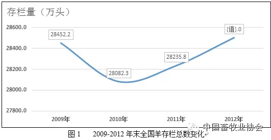 2012年我国羊存栏总数为28504万头,较2011年增长268.2万头,同比增长0.9%(见图1)。