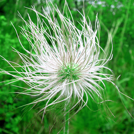 【形态特征】宿根草本,根圆锥形,有纵纹,全株密被白色长柔毛,株高10-40厘米,通常20-30厘米。基生叶4-5片,三全裂,有时为三出复叶。花单朵顶生,径约3-4厘米,萼片花瓣状,6片排成2轮,蓝紫色,外被白色柔毛;雄蕊多数,鲜黄色;花期3-5月。瘦果,密集成头状,花柱宿存,银丝状,形似白头老翁,故得名白头翁或老公花。