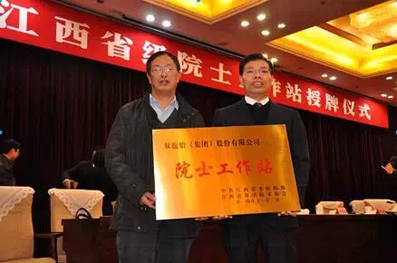 2014年12月24日,“2014年江西省级院士工作站授牌仪式”在南昌滨江宾馆隆重举行。本次参加授牌的院士有来自中国科学院、中国工程院的10位院士出席了授牌仪式,全省各届代表500多人参加了授版仪式会议,双胞胎集团副总裁王勇飞参加了仪式并上台领取院士牌匾,江西省委常委,组织部长赵受明为王勇飞副总裁颁发院士工作站牌,并合影留念。
