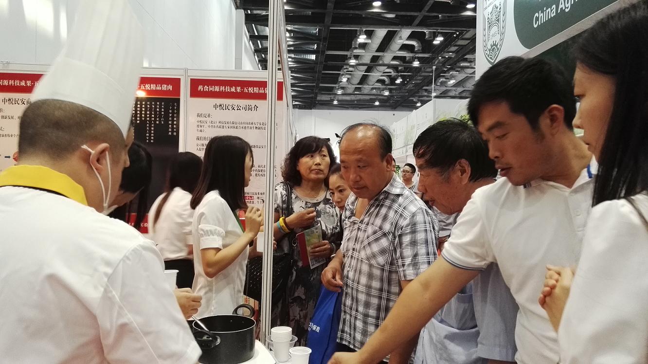本次展示的药食同源科技成果“五悦”精品猪肉是在北京市二商集团大红门第五肉联厂、大红门赤城生猪养殖基地和北京市农委菜篮子工程刘凤华教授工作站养猪养殖基地的合作的第一批试销产品。北京市二商集团白文祥副总率旗下诸多品牌企业一把手亲临展位品尝白水煮肉、肉汤,并指示二商集团要加强与团队的深度合作,及时跟进,特别是新近建设的大红门丰镇生猪养殖基地项目上全面合作,共同打造高品质猪肉品牌。