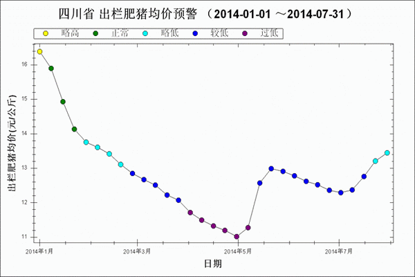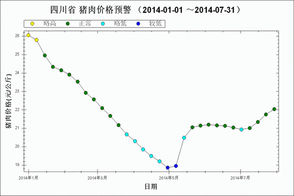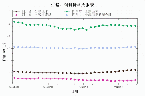 20147月份,四川生猪价格逐周回升,尤其中下旬涨幅较大,自5月初价格回升以来累计上涨22.07%;因玉米等饲料价格不断攀升,养猪效益虽持续回暖,全月仍然处在亏损阶段,出栏一头育肥猪亏损160元左右。