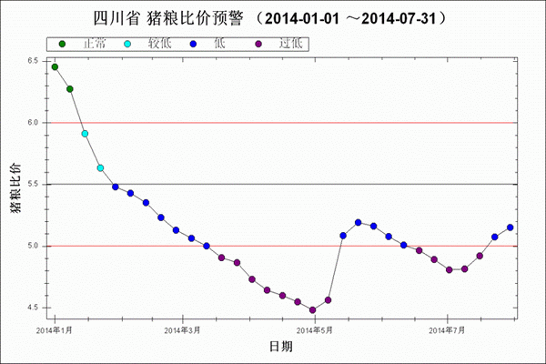 据四川生猪监测预警系统对1868县监测,20147月,四川生猪价格延续逐周上涨的态势;饲料价格稳中小幅波动,玉米快速攀升;猪粮比和猪料比较前期有所回暖,养猪亏损继续缩小。