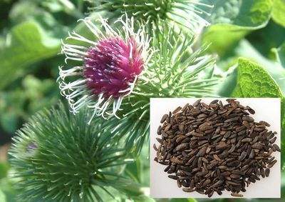 为菊科两年生草本植物牛蒡的成熟果实。主产于河北、浙江等地。秋季采收,晒干,生用或炒用,用时捣碎。
