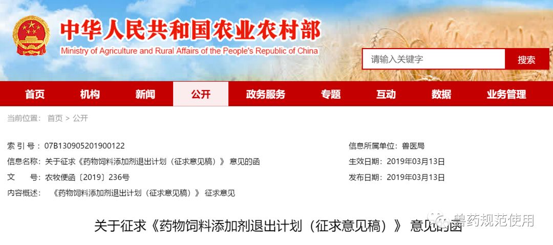 为贯彻落实《国家遏制细菌耐药行动计划(2016-2020年)》和《全国遏制动物源细菌耐药行动计划(2017-2020年)》,维护动物源食品安全和公共卫生安全,我局组织全国兽药残留与耐药性控制专家委员会就药物饲料添加剂退出问题进行了多次研讨评估。根据评估情况,结合我国实际,并借鉴有关国家和地区做法,形成了药物饲料添加剂退出计划(征求意见稿)(附后)。