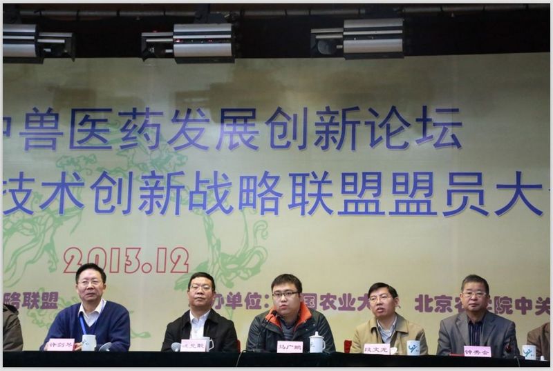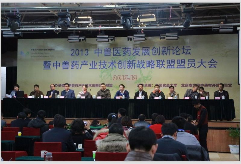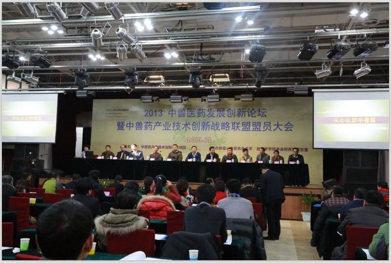 天气的阴霾也遮挡不住中兽医药人的热情,2013年12月23日。2013中兽医药发展创新论坛暨中兽药产业技术创新战略联盟盟员大会,在北京北京蟹岛生态度假村正式开幕了。本次大会针对中兽医药在养殖领域应用的困境,权威解读、交流中兽医理论指导下中兽药进入畜禽健康养殖的理论与实践,凸显中兽药生产企业文化,推动中兽医药产业快速发展;交流后抗生素时代,如何充分发挥中兽医药在动物保健中的作用,用中华文明,传统科技优势,破解动物源食品药物残留,疫病防控的难题,为我国畜牧业的健康发展保驾护航。